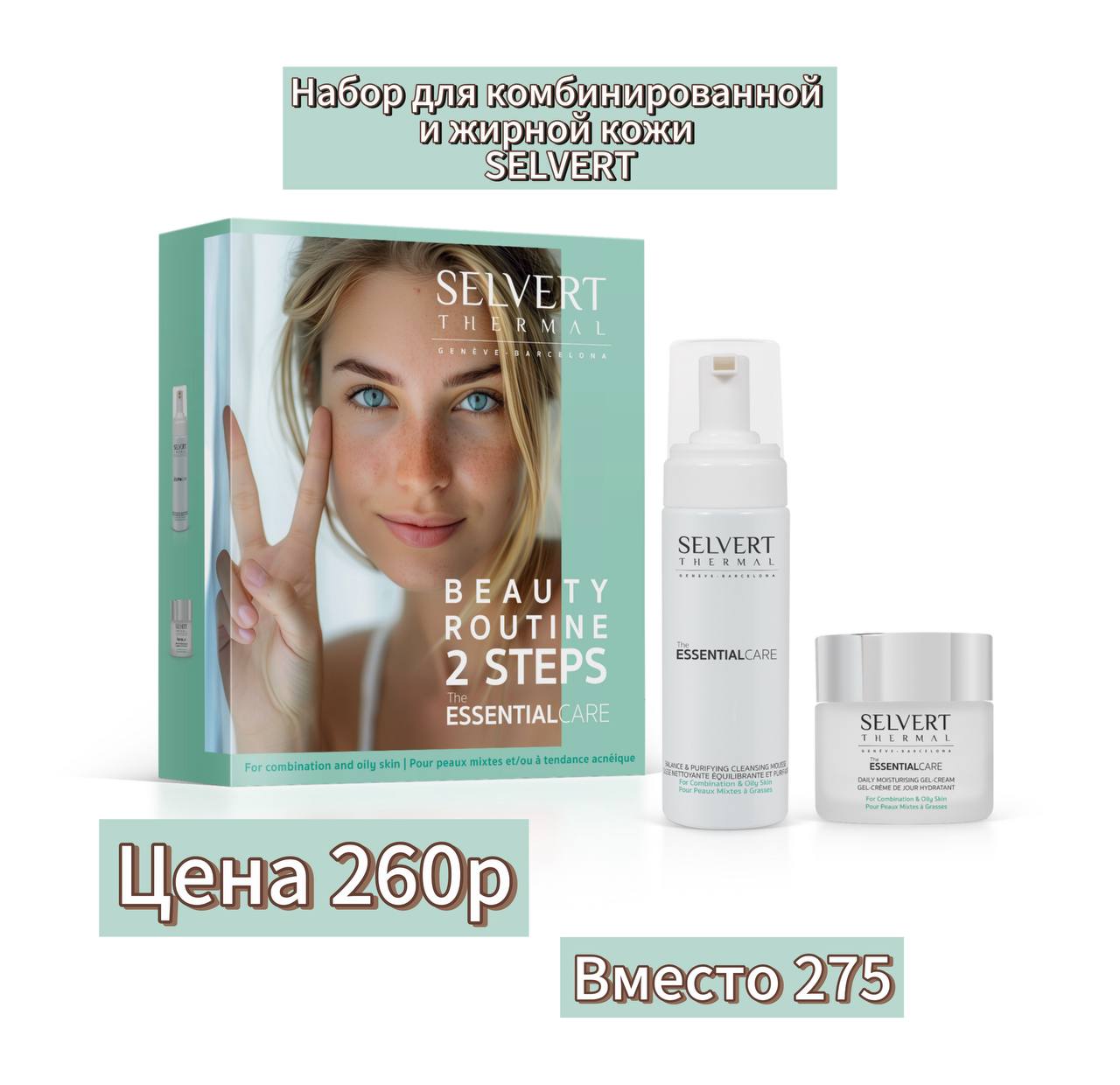Набор для комбинированной и жирной кожи SELVERT Стоимость 260р, вместо 275р