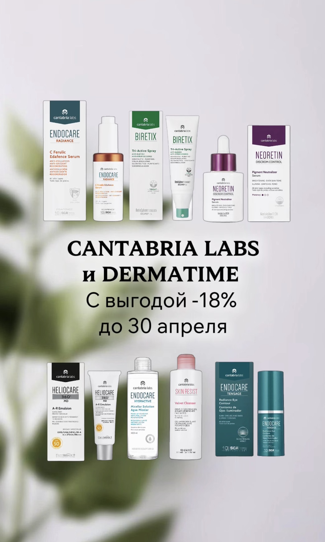 До 30 октября приобретайте любимые продукты Cantabria labs и Dermatime с выгодой -18%